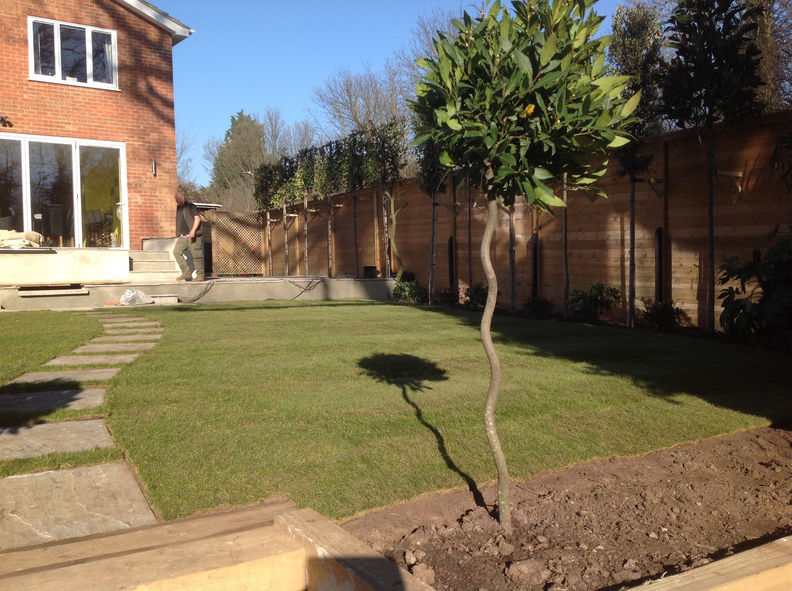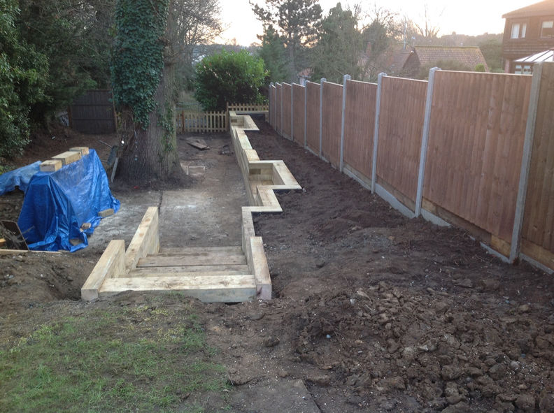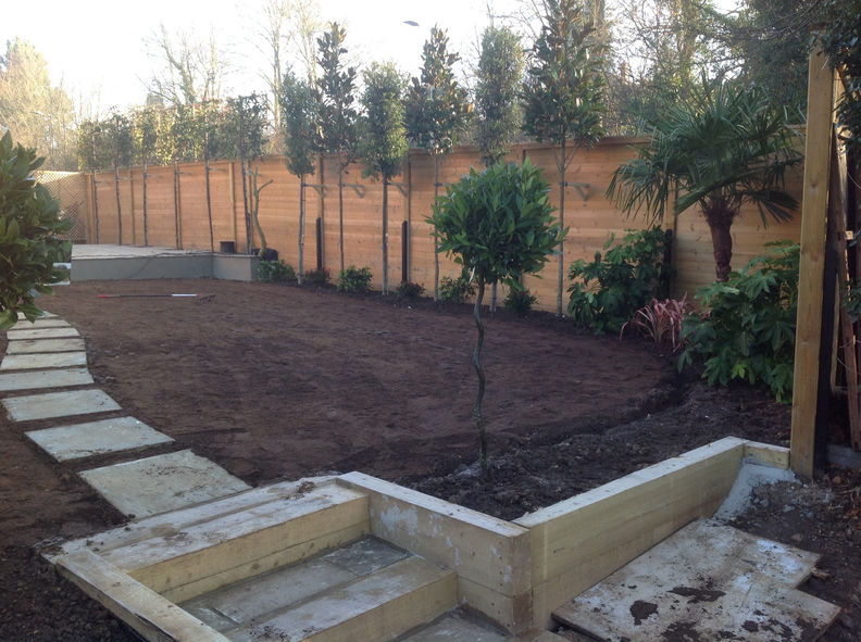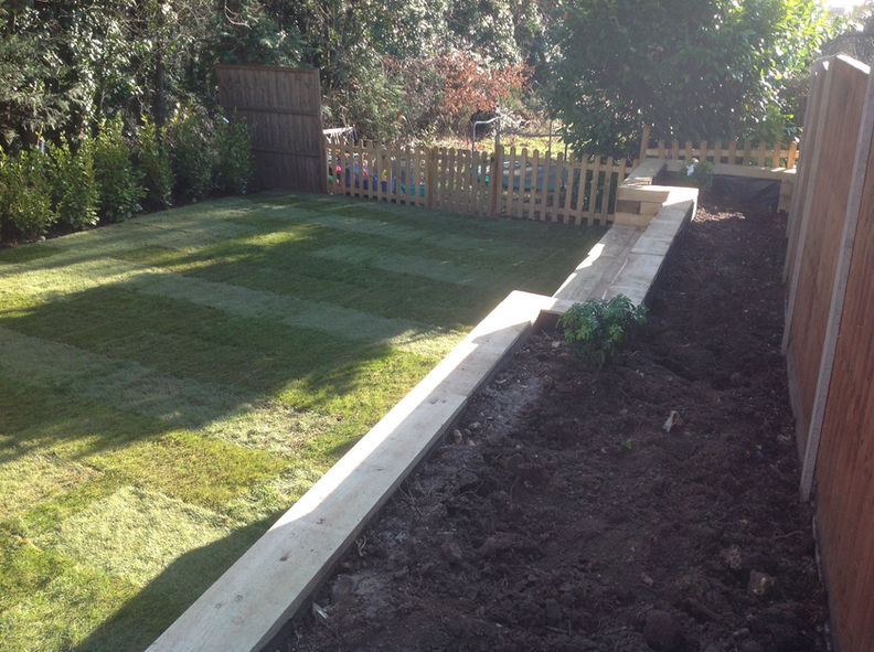 Garden Transformation. New Fencing, sleepers with integrated seating and artificial grass